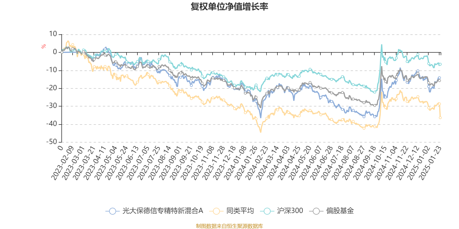 截至1月22日,光大保德信专精特新混合A近三个月复权单位净值增长率为6.62%,位于同类可比基金22/182;近半年复权单位净值增长率为25.46%,位于同类可比基金20/182;近一年复权单位净值增长率为18.48%,位于同类可比基金59/174。