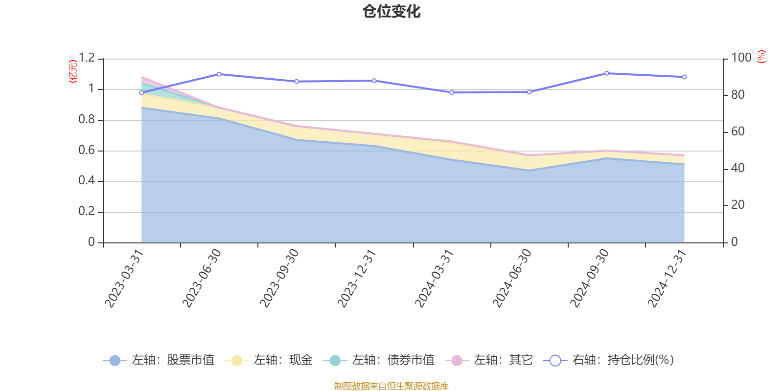 据定期报告数据统计,成立以来平均股票仓位为86.8%,同类平均为86.42%。2024年三季度末基金达到92.05%的最高仓位,2023年一季度末最低,为81.53%。